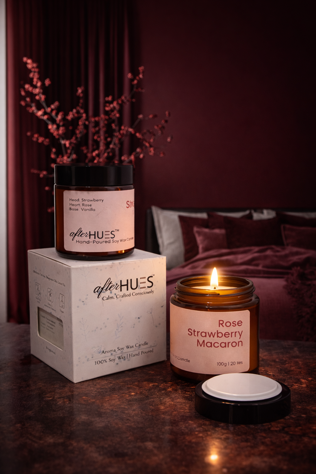 Every AfterHues candle is hand-poured in small batches — not mass-produced. That means every single candle gets the time and attention it deserves before it reaches you.